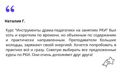 Драма и педагогика — а как это? На курсе вы познакомитесь с уникальными возможностями драма-педагогики в обучении русскому языку как иностранному. Узнаете, как использовать творческие, интерактивные методы для развития всех видов речевой активности и вдохновить студентов на активное участие, пробуждая их любознательность и желание говорить.