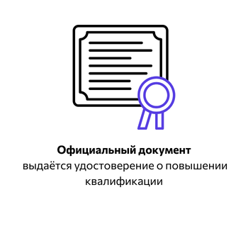 По окончании курса выдается удостоверение о повышении квалификации установленного образца. Данные о документе вносятся в реестр ФРДО.