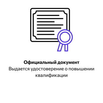 По окончании курса выдается удостоверение о повышении квалификации установленного образца. Данные о документе вносятся в реестр ФРДО.